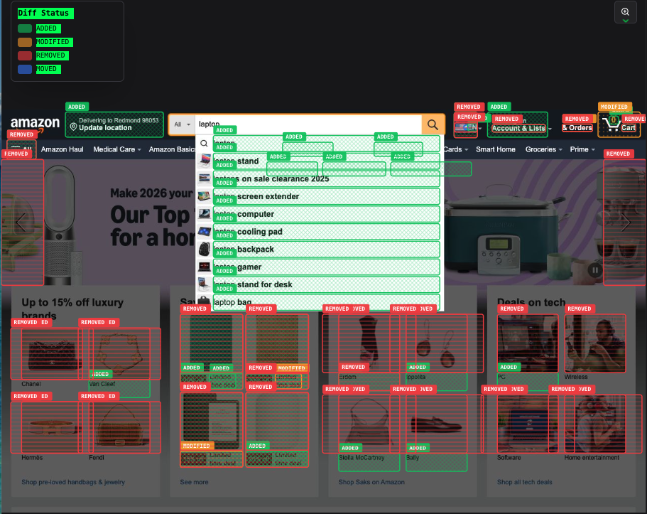 - Green boxes = Successfully interacted elements