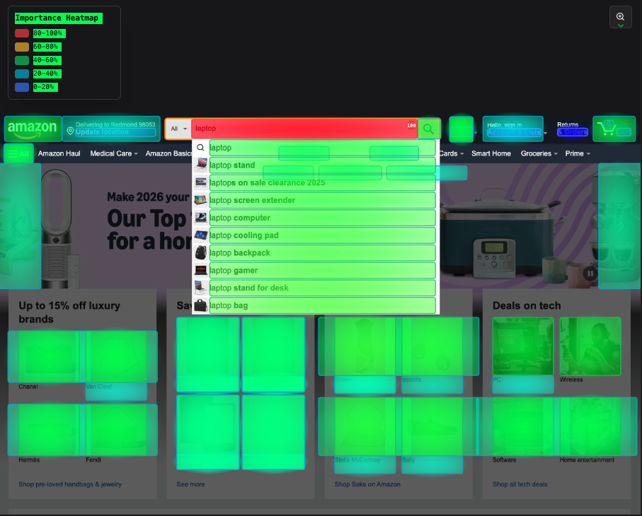 - Visual overlays show element interactions