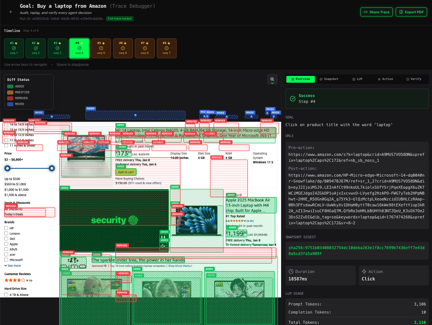 - See exactly what the agent "saw"