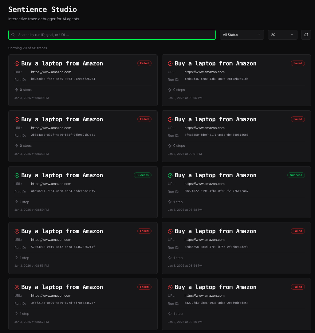 Think of it as a "recording" of your agent's entire run that you can replay and inspect.