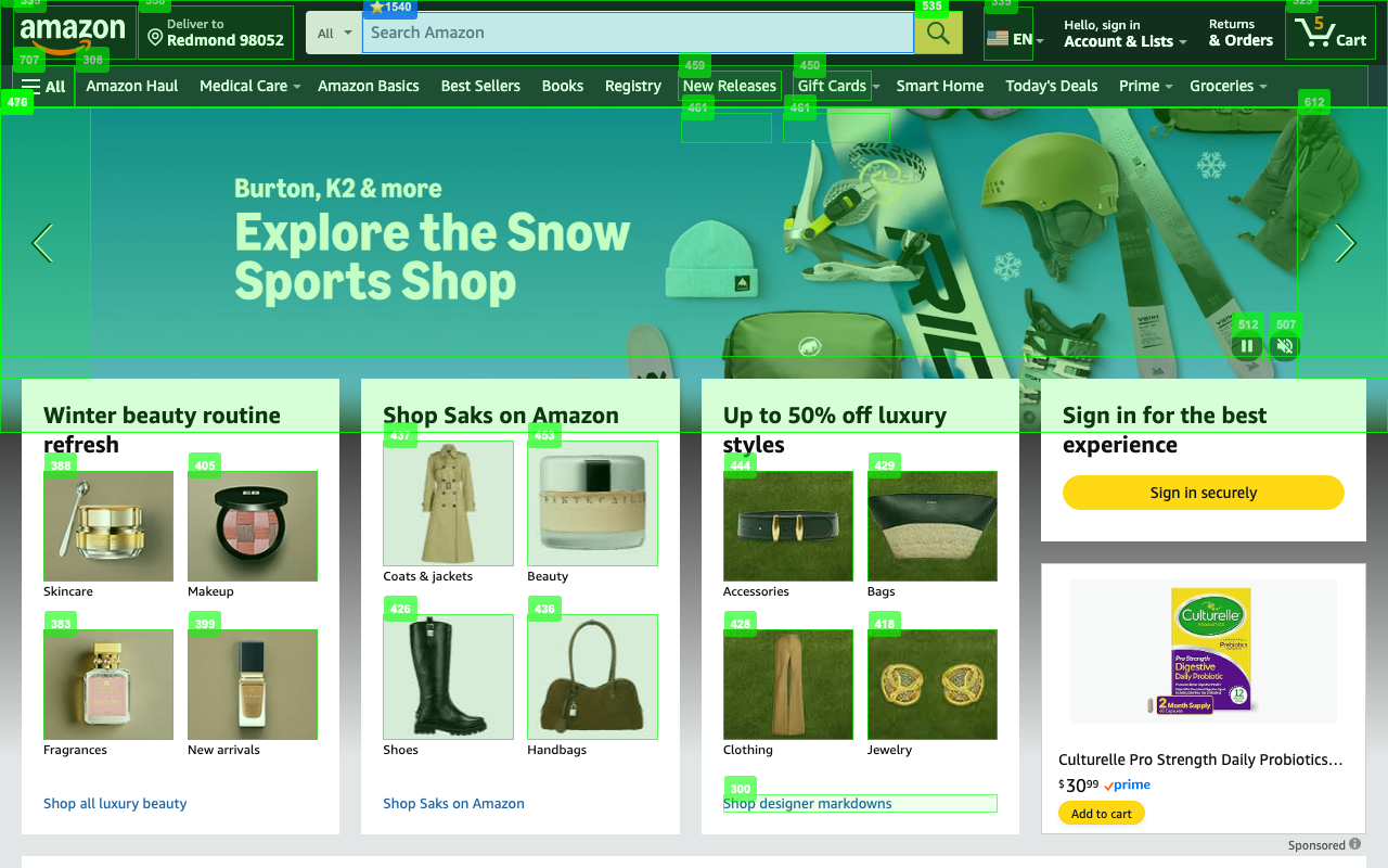 Amazon shopping flow snapshot diff status between 2 steps (shows whether the LLM action succeeded)